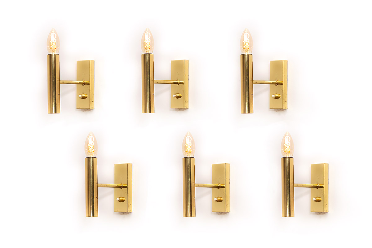 Vintage set of 6 Fog & Mørup brass wall lamps